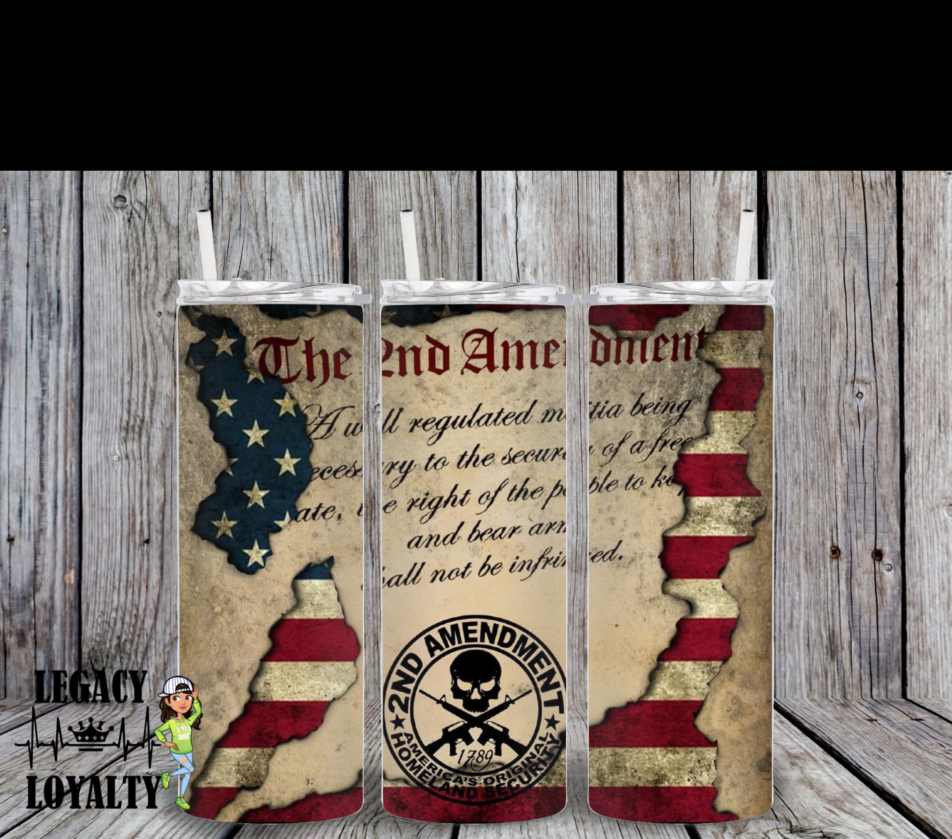 This 2nd Amendment tumbler is made from stainless steel to ensure your beverage stays at its desired temperature for extended periods of time. The innovative design includes a BPA free reusable plastic straw for your convenience. Enjoy hot beverages with ease or keep your drink cold all day.