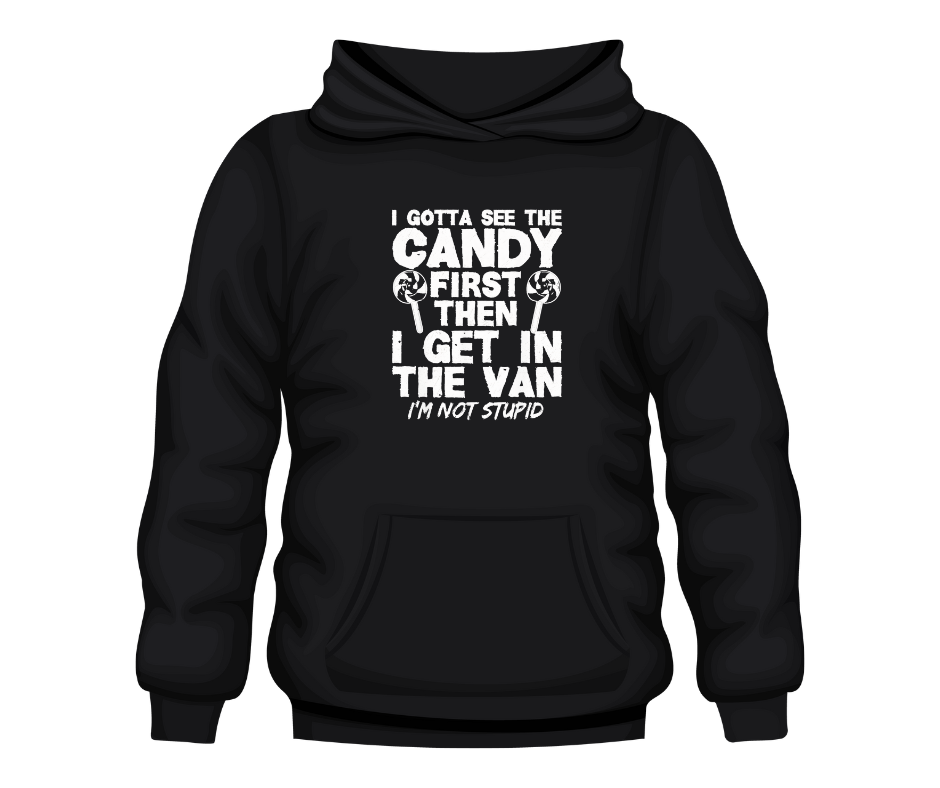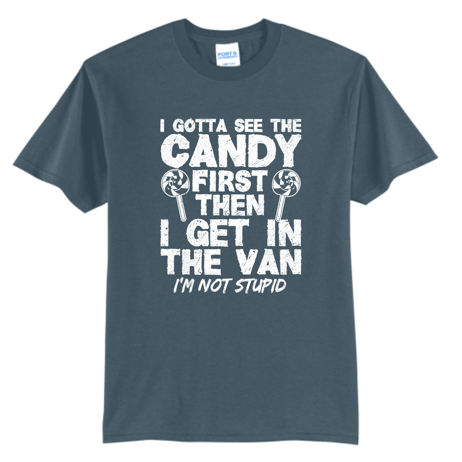 Catch the fun with "First I see The Candy" — a playful design that sparks a sense of adventure and mischief. It’s like spotting your favorite treat and hopping into the van for a sweet ride. Perfect for those who love a little whimsy and excitement in their style.