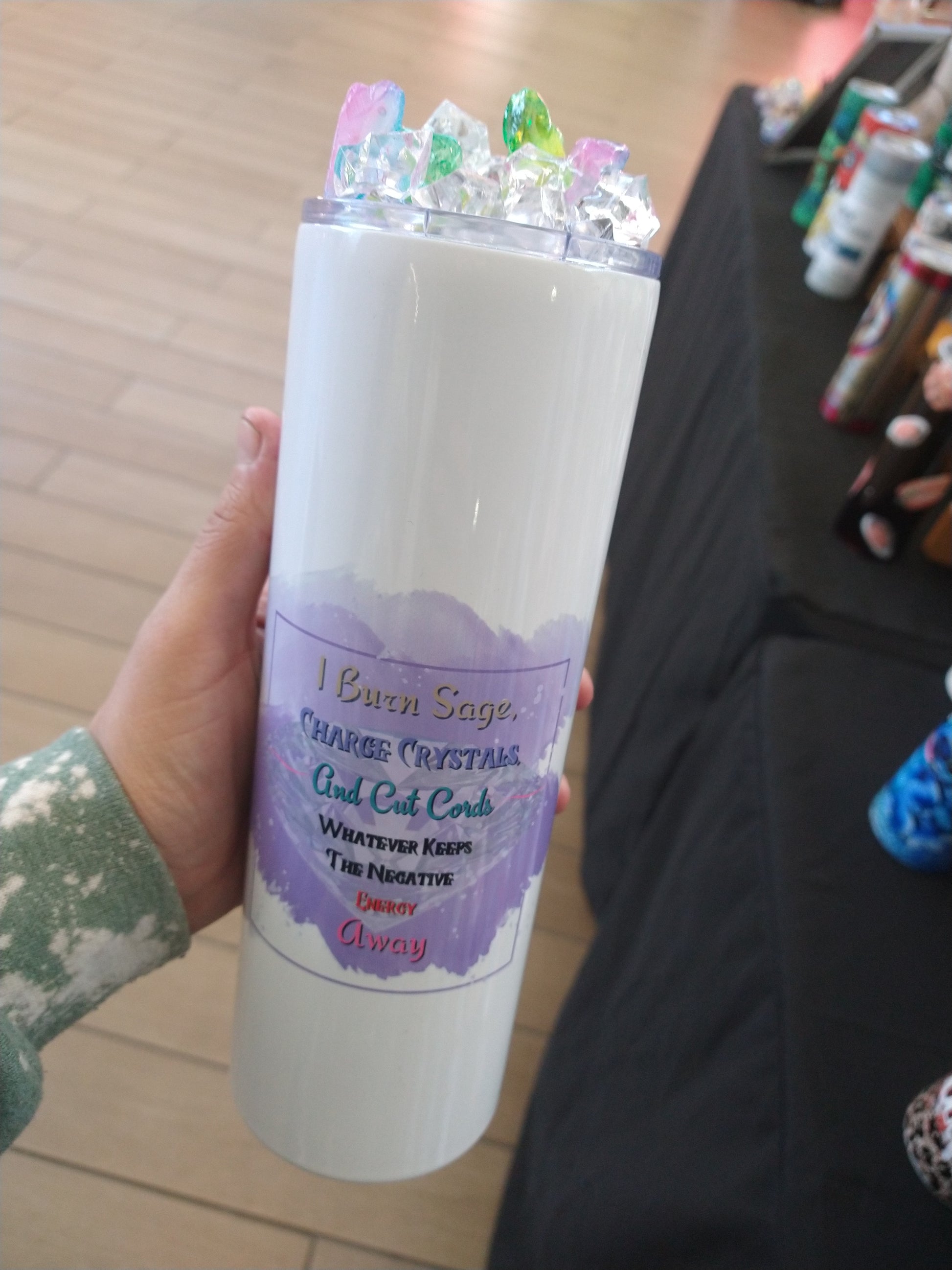 30 oz Cut Cords Stainless steel tumbler. This piece comes with a Ice Topper built directly to the lid. As well as a 10.5 inch straw.