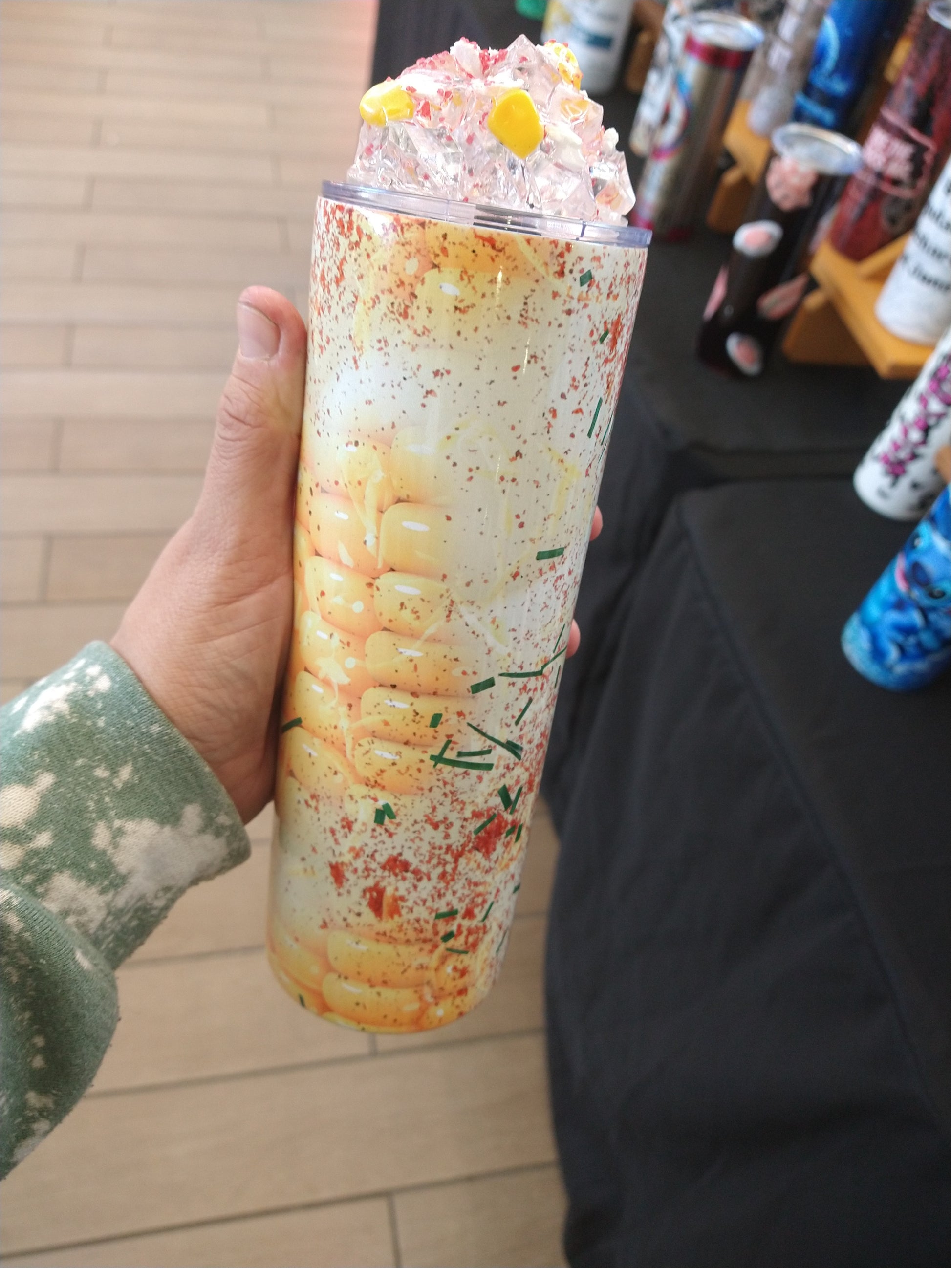 20 oz Stainless steel tumbler. This piece comes with a magnetic Ice Topper . As well as a 10.5 inch straw.