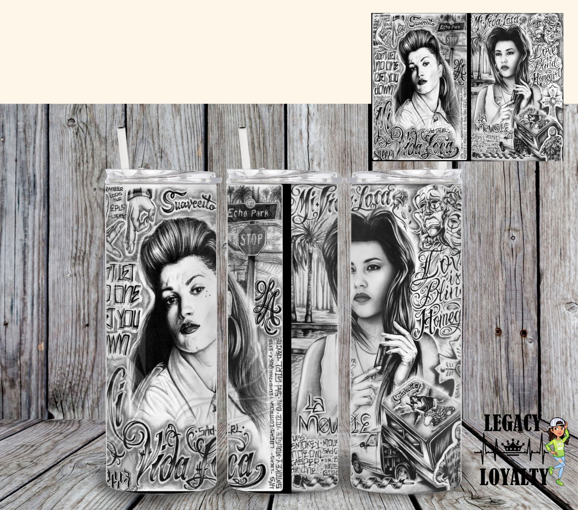 Mi Vida Loca Inspired Sketch art Stainless steel tumbler that can be used for Hot/Cold Drinks. Keeps drinks hot or cold for 4-6 hours.