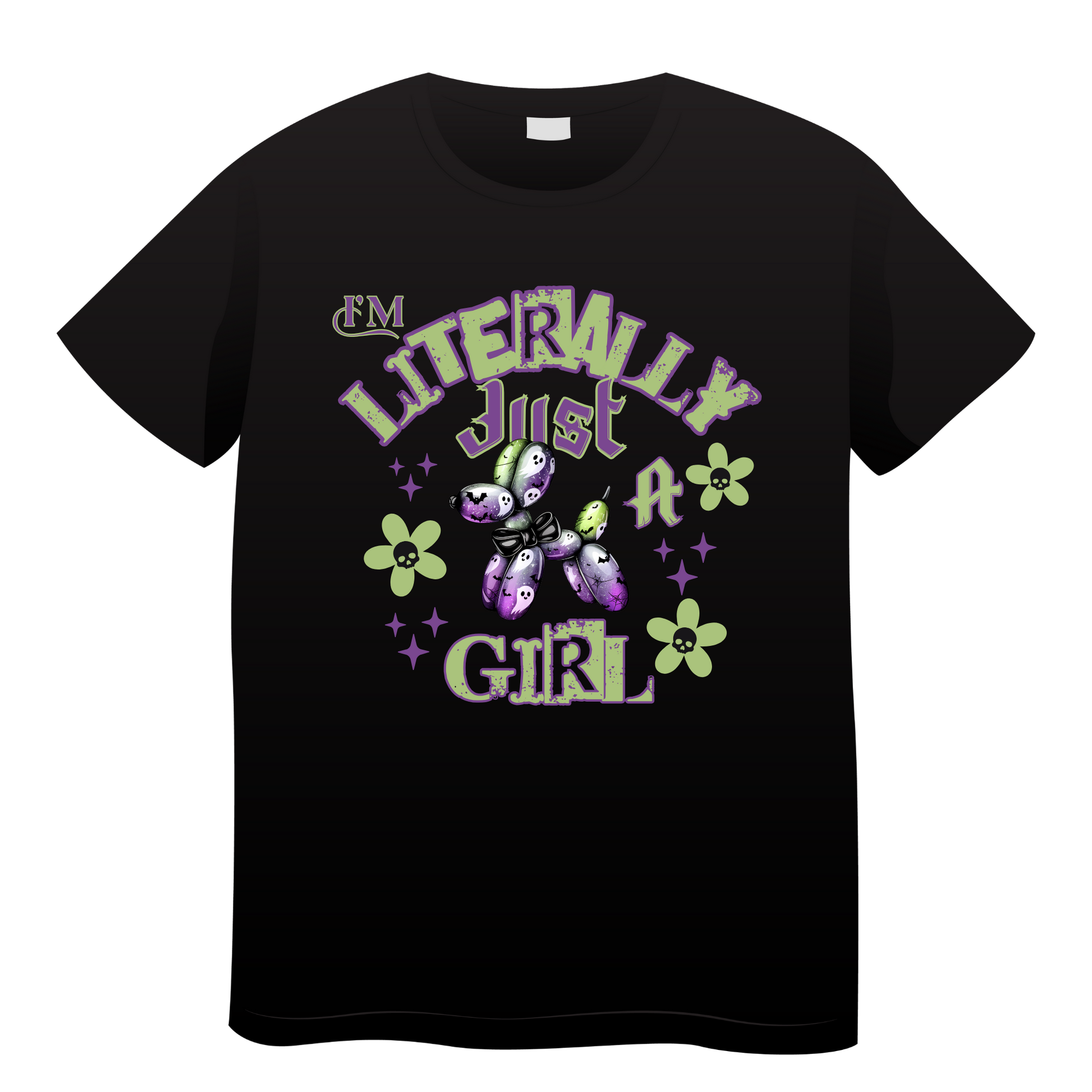 Celebrate your unique charm with this playful "I'm Literally Just A Girl" design. Perfect for expressing your fun, carefree spirit, this piece adds a lighthearted touch to any outfit. Embrace your individuality and let your personality shine through with a wink and a smile.