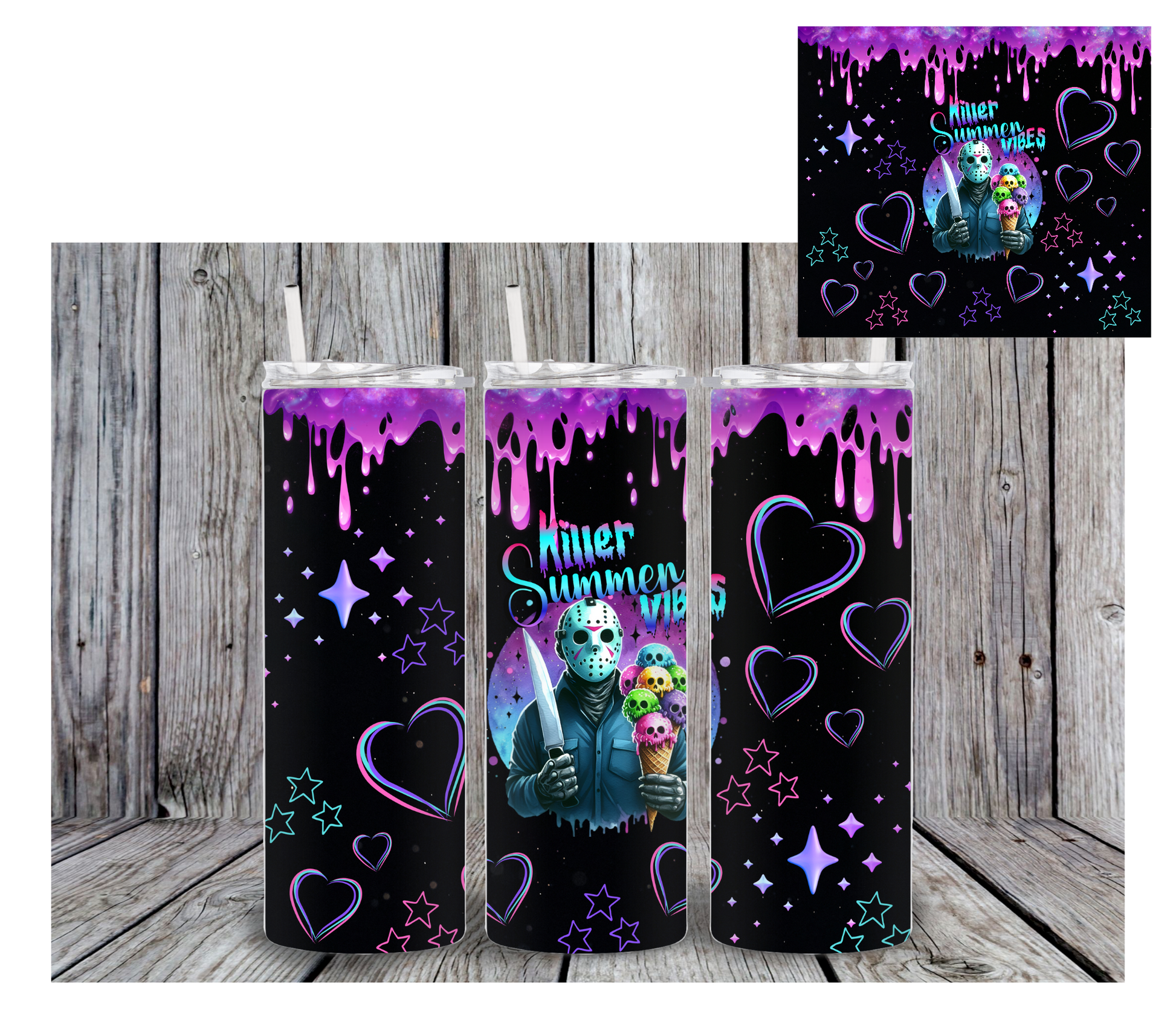 Introducing the Killer Summer Jayson! This tumbler combines the thrilling world of horror with the bright and lively vibes of summer. Perfect for chilling out with a cold drink on a hot day, this tumbler is sure to be a hit with horror and summer lovers alike. Get yours today and add a killer touch to your summer!