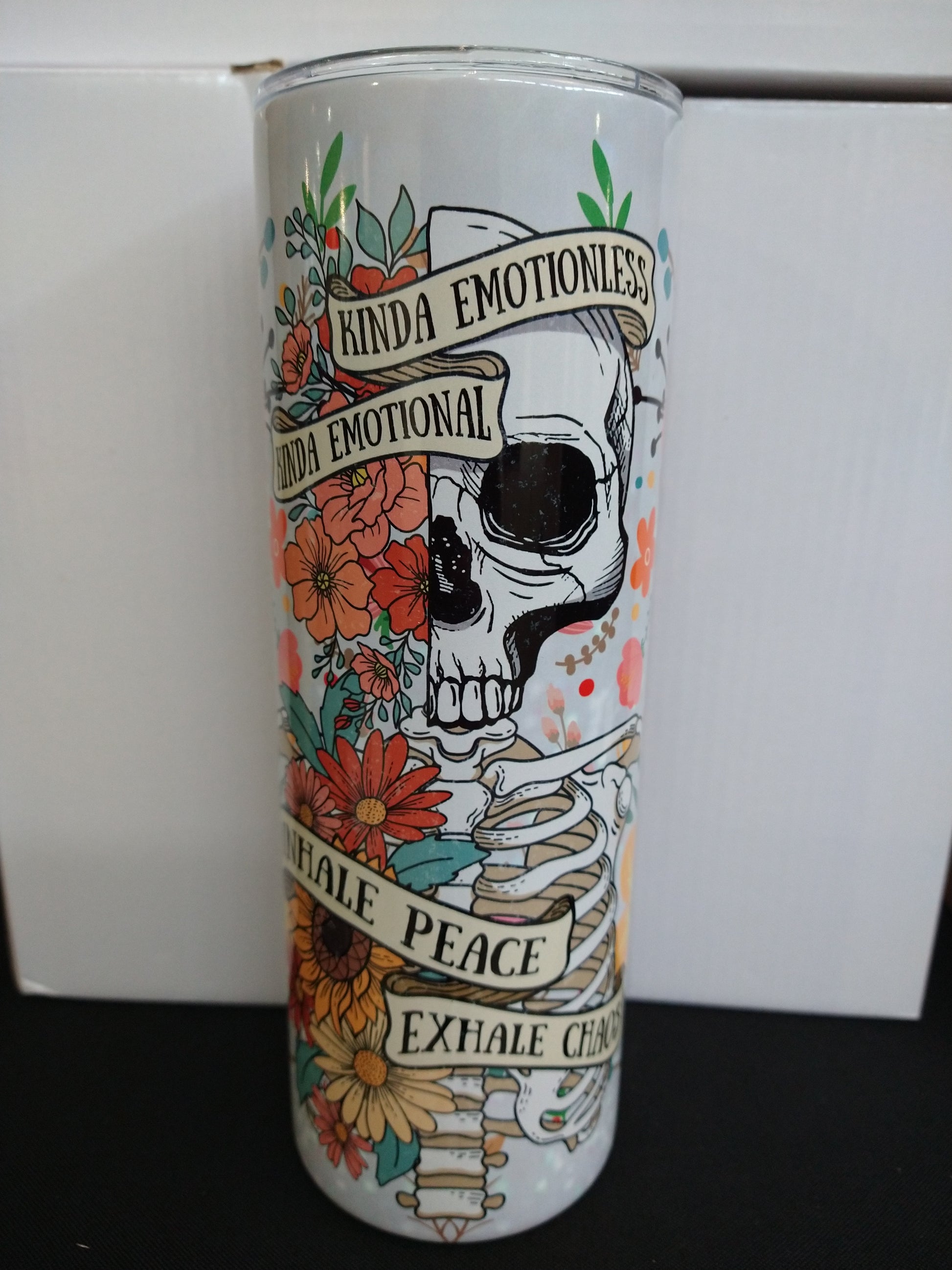 Stainless steel tumbler. Keeps drinks hot or cold for 4-6 hours