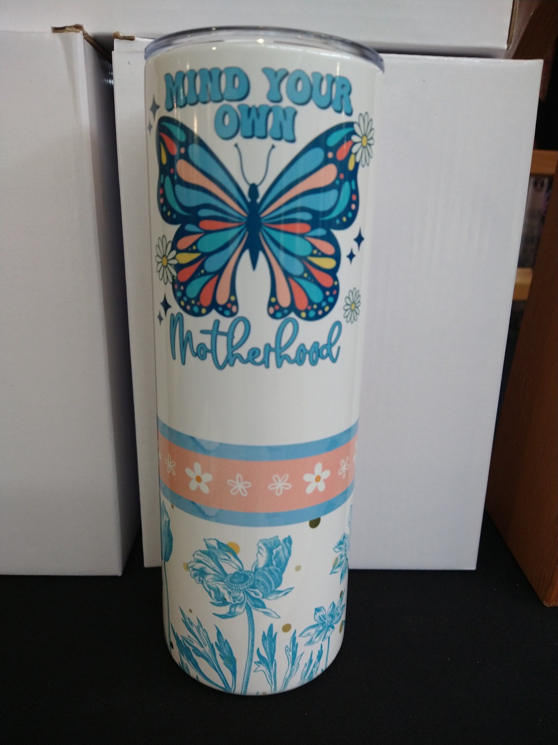 Stainless steel tumbler. Keeps drinks hot or cold for 4-6 hours