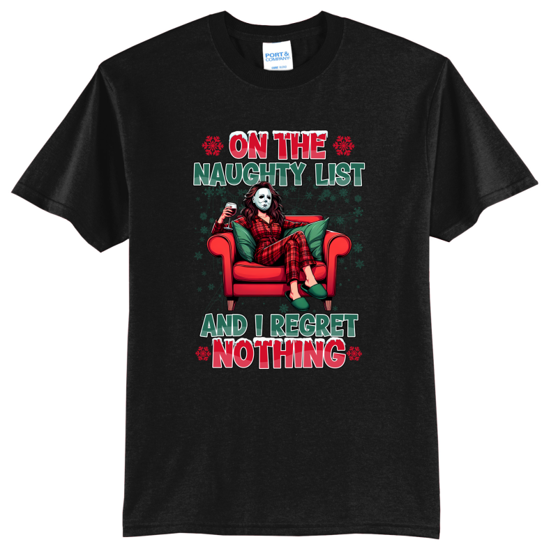 Get ready to spook this holiday season with our On The Naughty List Tee! This horror themed Tee is perfect for those who don't mind a little scare. Show off your playful side with this unique design. Don't be afraid to be a little naughty!