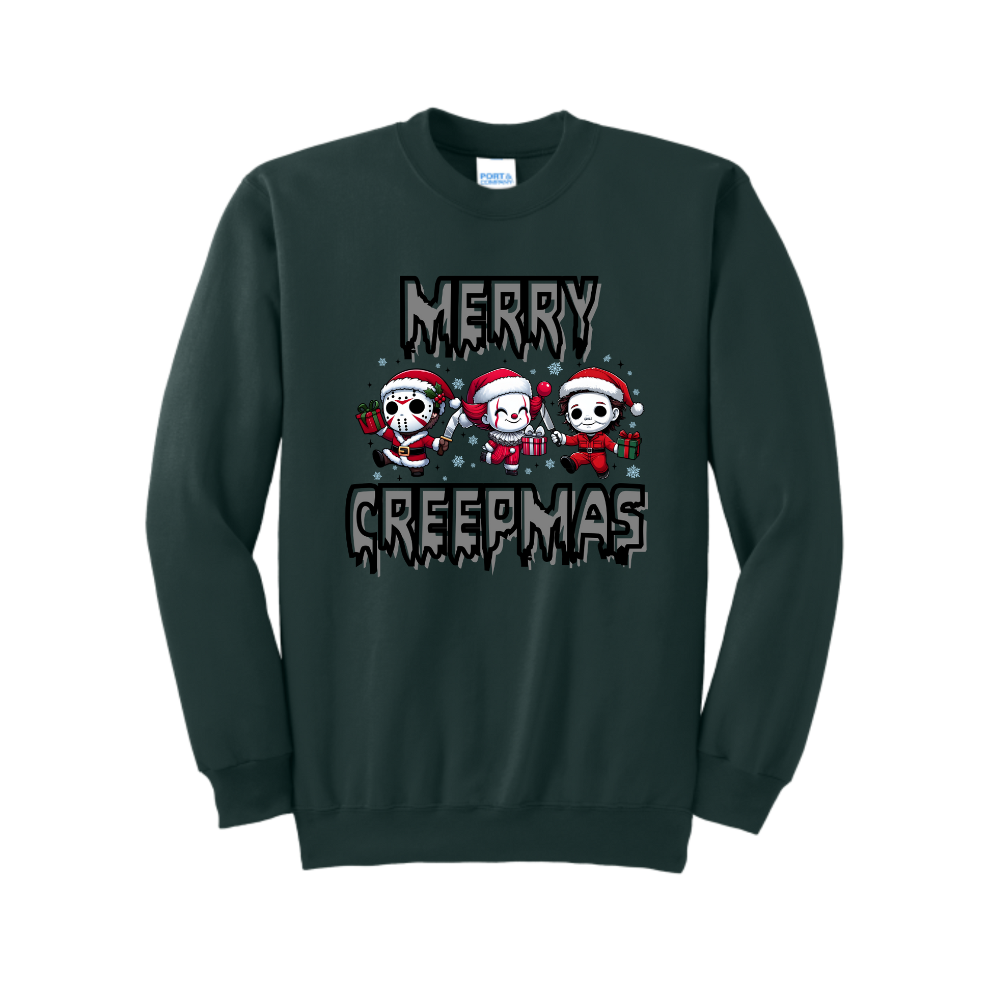 Get ready to sleigh all day (and night) in our Merry Creepmas Sweater! This festive and freaky sweater will definitely get you on Santa's naughty list. Perfect for those who like to celebrate the spookiest time of year all year long. Ho ho horror!