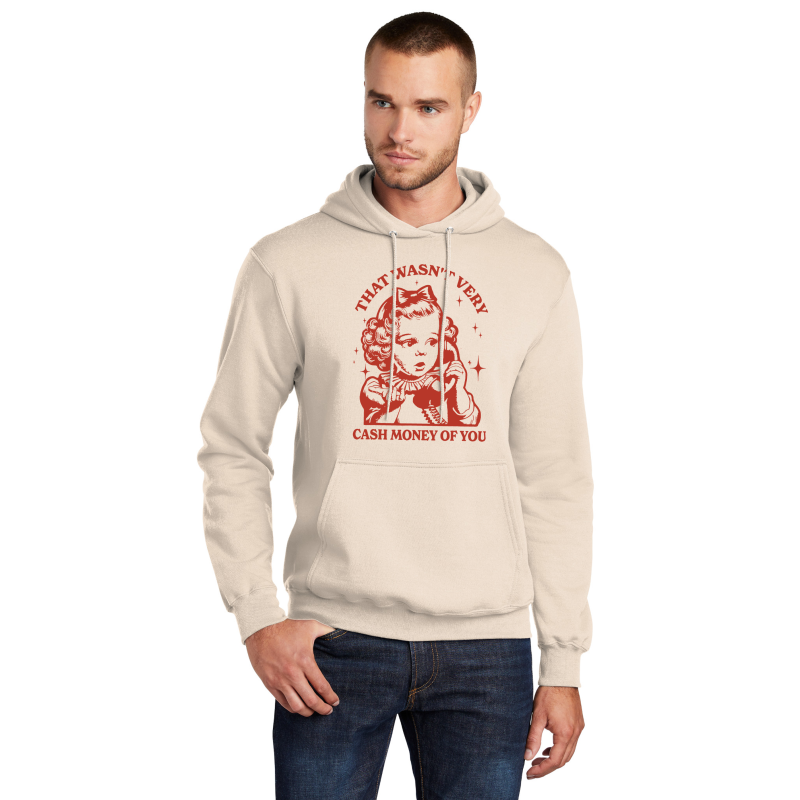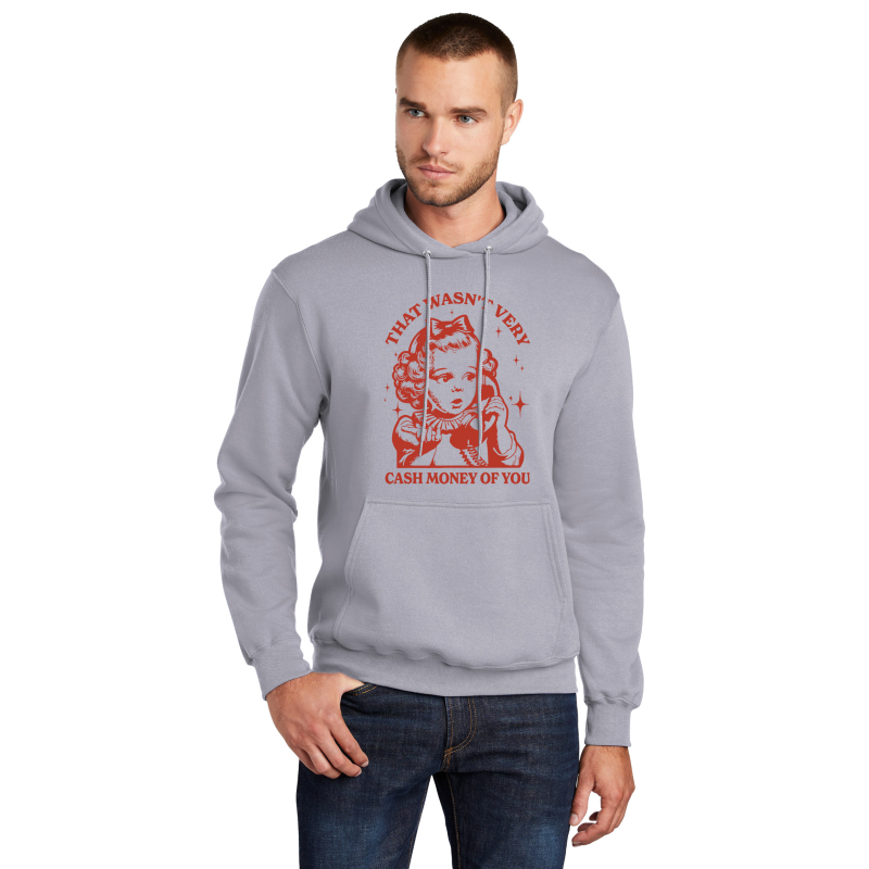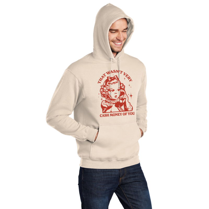 Unleash your bold and daring side with our "That Wasn't Very Cash Money Of You Hoodie!" This hoodie features a design that reflects your unapologetic attitude and drive to take risks. Make a statement while staying cozy and comfortable in this stylish and motivating hoodie.