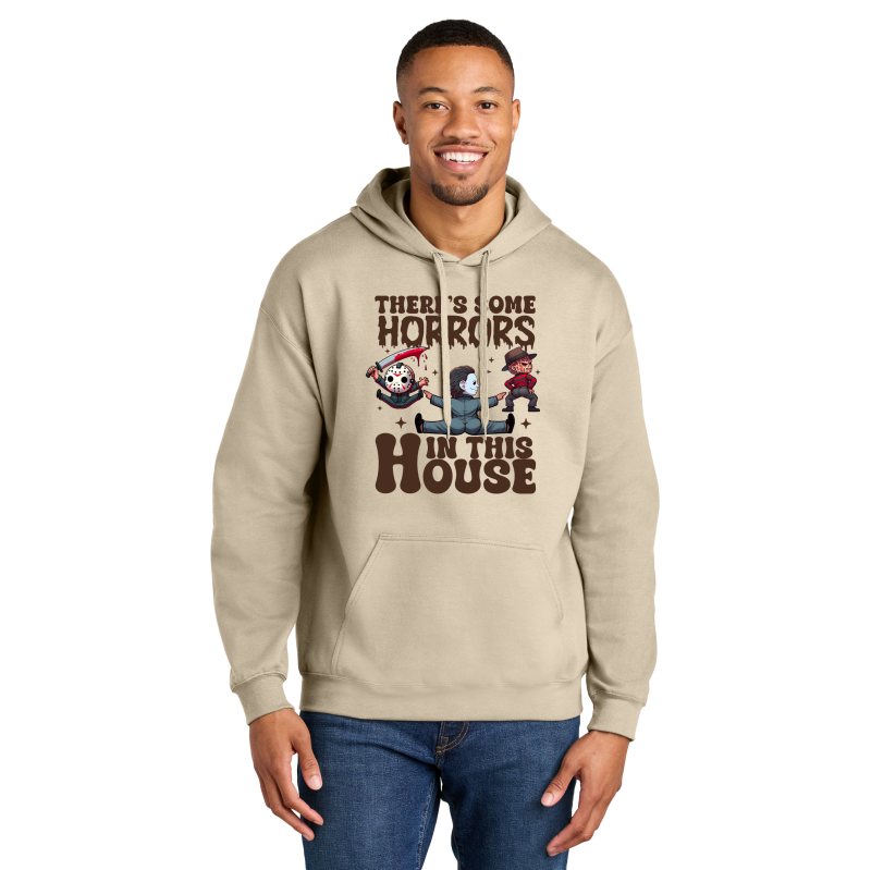 Get ready to embrace your inner thrill-seeker with the "There's Some Horrors In This House Hoodie"! This bold hoodie is perfect for those who love to take risks and embark on new challenges. With its bold design and comforting fit, it's the perfect addition to your adventurous wardrobe. Dare to be different and stand out in this daring hoodie!
