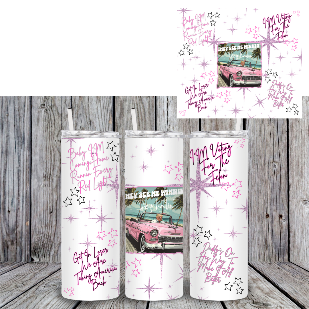 Get ready to sip your way to success with the They See Me Winning Tumbler. This colorful tumbler features a playful design and durable construction, keeping your drinks hot or cold. Perfect for on-the-go winners who like to stay hydrated in style. Winning never tasted so good. (Insert wink emoji here).