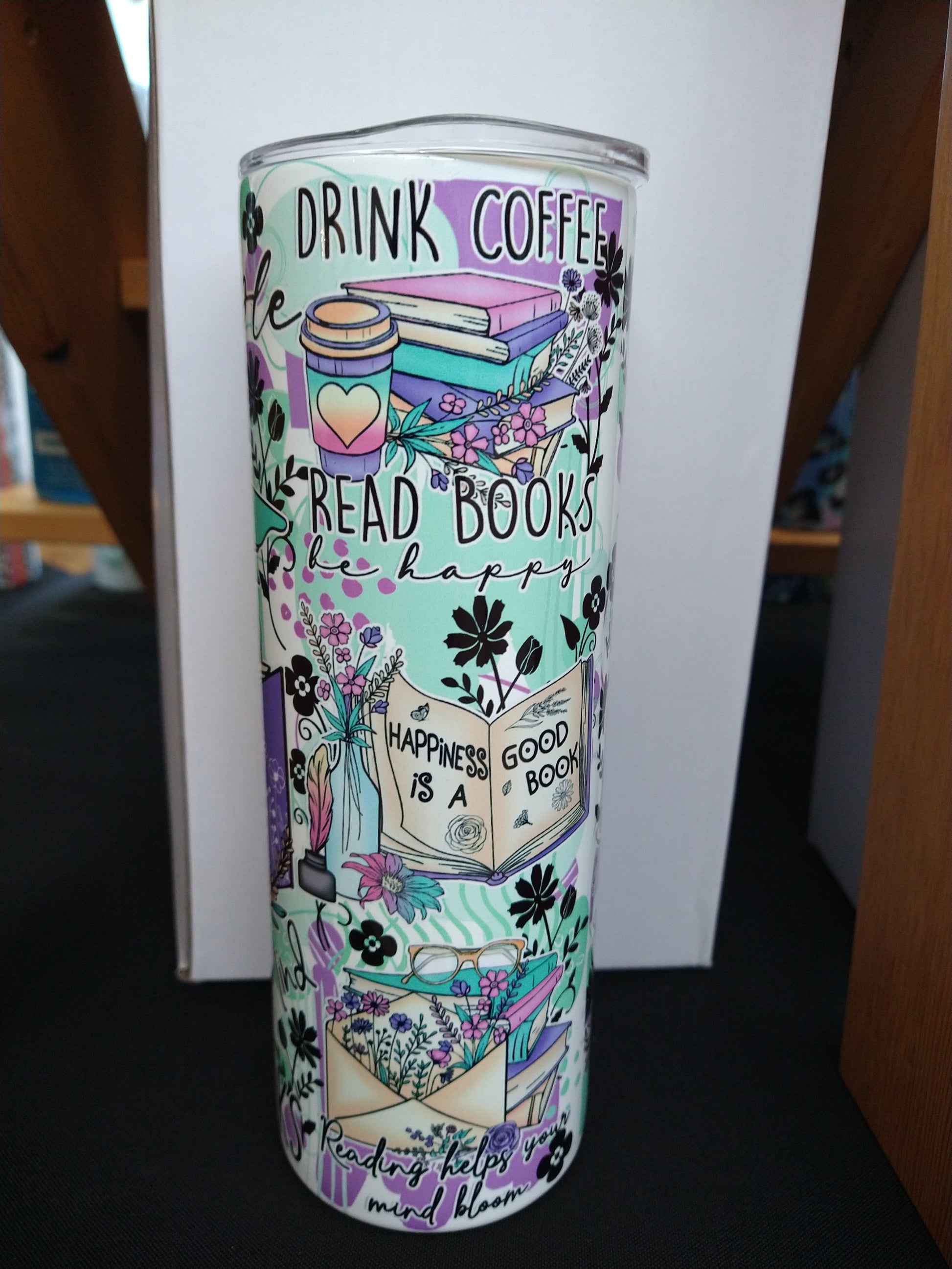 Stainless steel tumbler. Comes in 20 oz and 30 oz. Also included is a reusable plastic straw