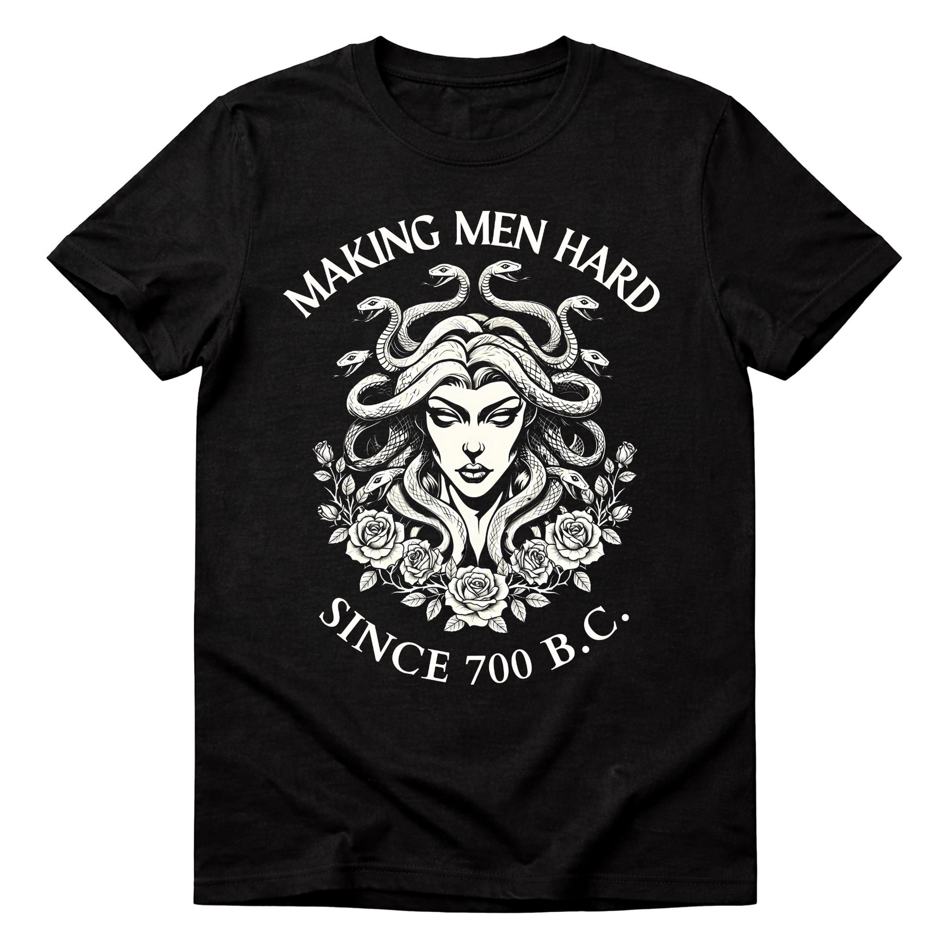 Medusa Shirt Turn heads and command attention in this bold statement piece. Inspired by mythology's most captivating figure, the Medusa Shirt brings edgy sophistication to your everyday wardrobe. Perfect for those who dare to stand out, this tee combines comfort with attitude. Whether you're channeling confidence or making a fashion statement, wear it like you own the room. Available in multiple colors and sizes to match your vibe.